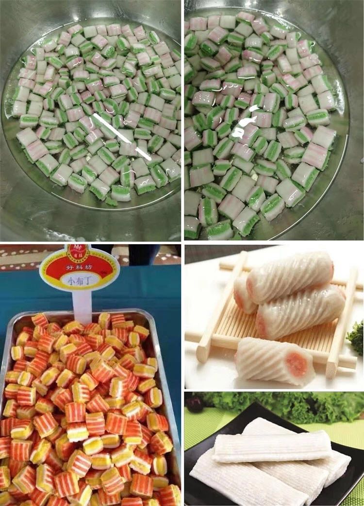 709多功能成型機(jī)新一代的多功能淡水丸機(jī)為魚肉制品成型設(shè)備,配合泵脯(供料機(jī))使用,能生產(chǎn)出單色、包心及多色各種花式的品種,單色配一臺(tái)、兩種顏色配兩臺(tái)、三色配三臺(tái)。該機(jī)采用雙電機(jī)雙變頻設(shè)計(jì),不單只是速度可調(diào),而且產(chǎn)品上的條紋旋度也可調(diào),使得做出的產(chǎn)品更多樣化,操作起來更方便。特別配備滾切刀,能生產(chǎn)出平口和圓口的淡水丸,具有一機(jī)多用的特點(diǎn),可做產(chǎn)品:淡水丸、魚排、小布丁、鱈魚卷、蝦卷、蟹卷、烤魚棒、片片脆、鴛鴦片等火鍋料