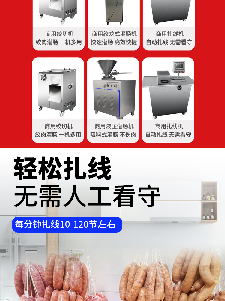 作者:旭眾機械發(fā)布時間:2021-11-18 16:47查看數(shù):次您當(dāng)前的位置:首頁>>產(chǎn)品展示>>肉制品加工系列>>扎線機